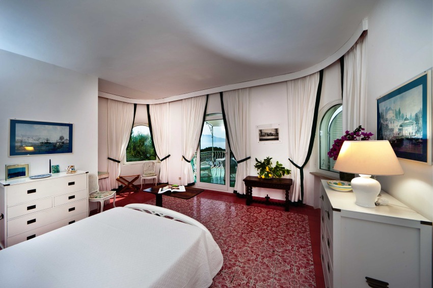 Villa Twenty Nine is a two-story Caprese style luxury villa, with breathtaking views of the bay of Naples and its unique islands. The striking white stucco structure sits on the San Lorenzo peninsula overlooking the ruins of a Roman tower, Mount Vesuvius and the Mediterranean sea with Capri, Ischia, Procida and Naples.