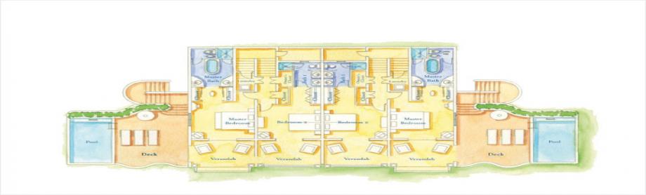 This “Cotton House” style villa has two air conditioned bedrooms with en-suite bathrooms, ceiling fans, large closets and private verandas with spectacular views.