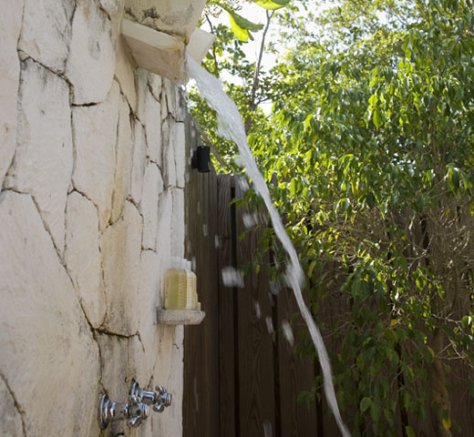 Our detached three-bed villa with ocean views comprises two large master bedrooms featuring four-poster king-size beds, patios and ensuite bathrooms with outdoor shower gardens and a third bedroom.
